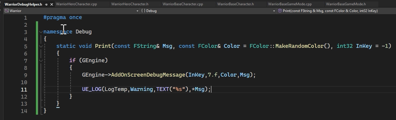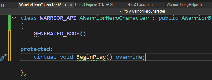 WarriorHeroCharacter.h에서 BeginPlay()를 선업해줍니다.