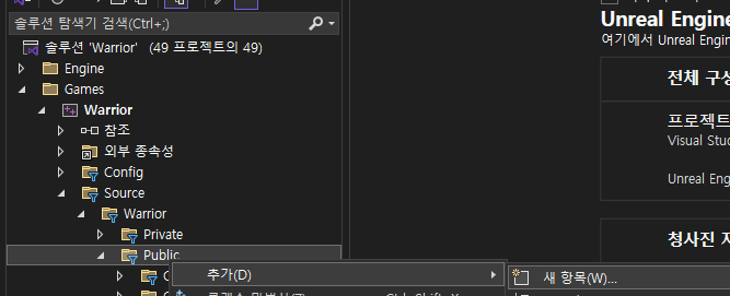 Visual Studio 를 열고 public 폴더 우클릭후 헤더파일을 추가해주는데