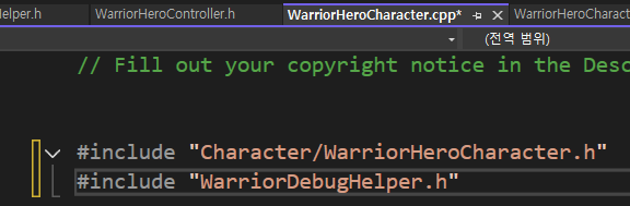 WarriorHeroCharacter.cpp에 헤더파일을 추가해주고