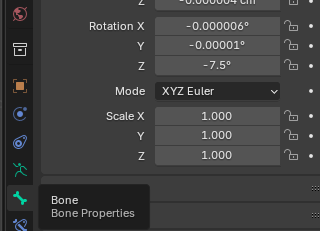 5. 아웃라이너(Outliner)에서 shoulder_L, R을 모두 선택한 상태에서 아래 Transform > Rotation Z 속성을 Alt 키 를 누르고 선택한 다음, -7.5를 입력하고 엔터키를 누릅니다.