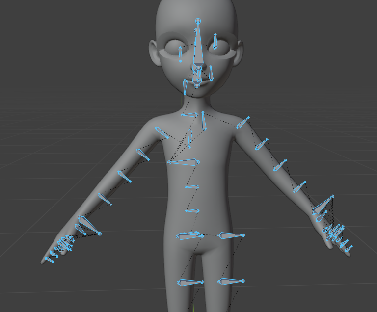 블렌더로 임포트하면 T포즈 입니다. 다음과 같이 A포즈로 바꿔보겠습니다.