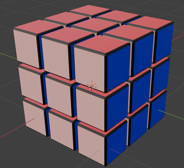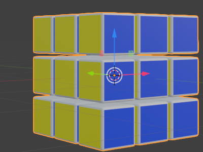 오브젝트 모드로 나오면 전부 3x3x3=27개의 오브젝트가 생긴다 . 모든 오브젝트의 오리진은 똑같다.