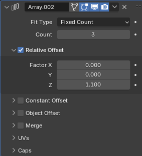 오브젝트 모드에서 보면 중심점이 가운데가 아니다. 일단 Array를 전부 컴펌해주고 오브젝트 오리진을 지오메트리로 하면 가운데로 온다