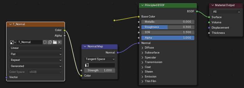 사용시는 Normal Map 노드를 추가해서 사용한다.