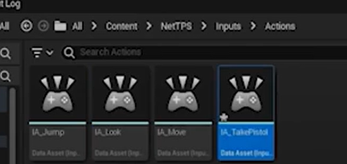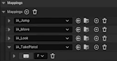 총을 줍기위해 IA_TakePistol을 IA_Jump를 카피해 만든다. IMC에 등록해준다.