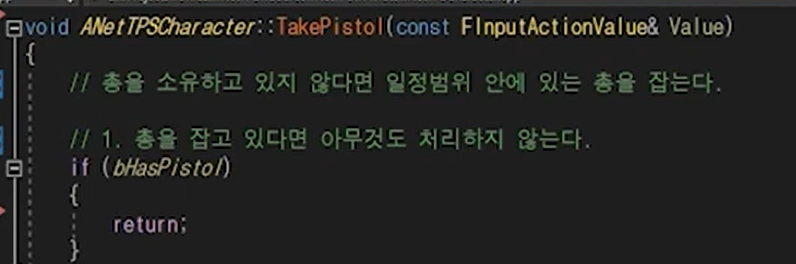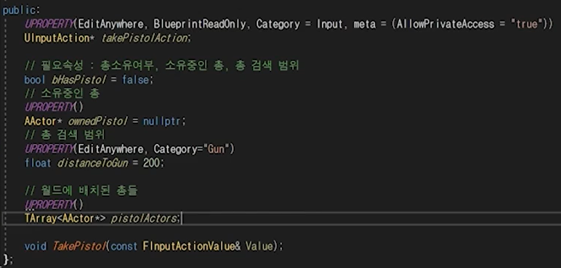 IA_TakePistol을 TPS.h에 변수와 액션을 선언해주고.