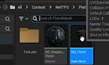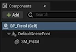 BP_Pistal을 액터로 만들어주고 SM_Pistol을 끌어다 디폴트씬루트에 붙여준다.