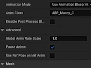 임시로 붙인 SM_Pistal은 지워준다. Mesh의 PauseAnim도 꺼준다.