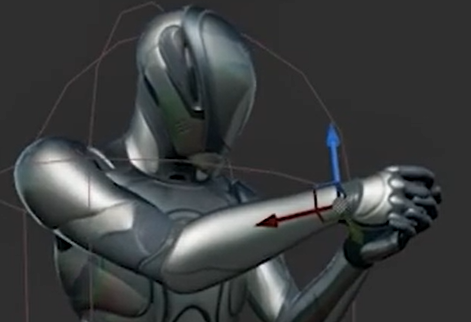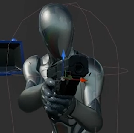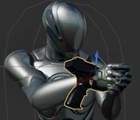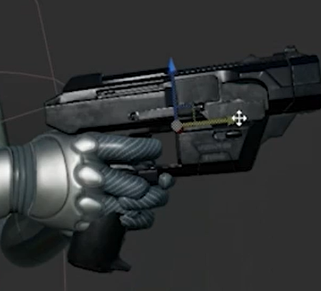 건의 위치를 맞추기 위해 GumComp를 선택 위치와 로테이션을 조작해 총을 손에 맞춰준다.