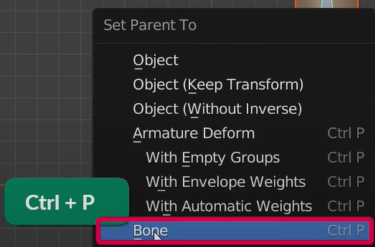 Ctrl-P를 눌러 Bone을 선택하고 로테이션 해보면 잘 따라온다. 오른쪽 뼈도 똑같이 해준다