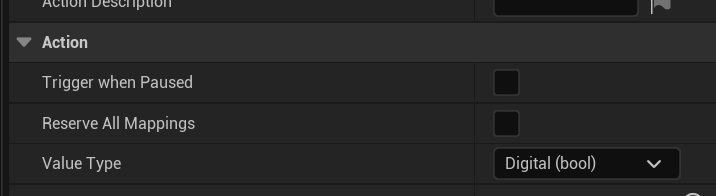 총알을 발사하기 위한 인풋액션이 필요합니다. IA_ShipFire를 만들어주겠습니다 .ValueType은 Digital(Bool)입니다.