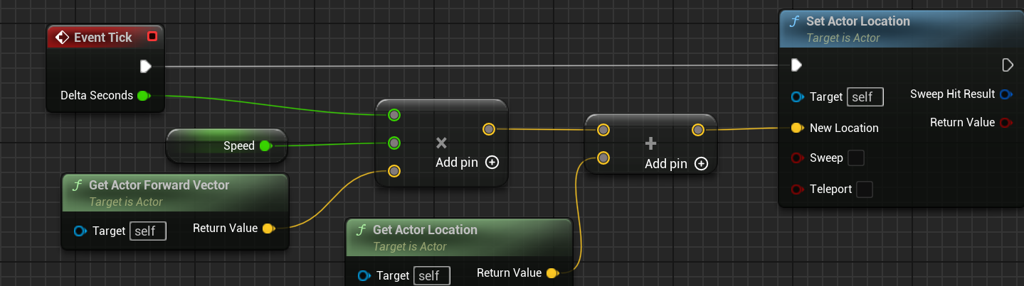 노드를 잘보면 입력을 받았을때는 입력 벡터를 기준으로 날라 갔지만 지금은 총알 스스로 앞으로 나가기 위해 forward 벡터값을 활용합니다.