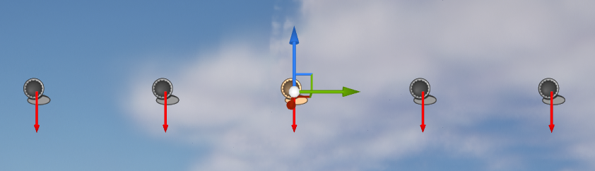 전 Z축을 1000으로 하고 좌우로 250간격으로 총 5개를 배치했습니다.