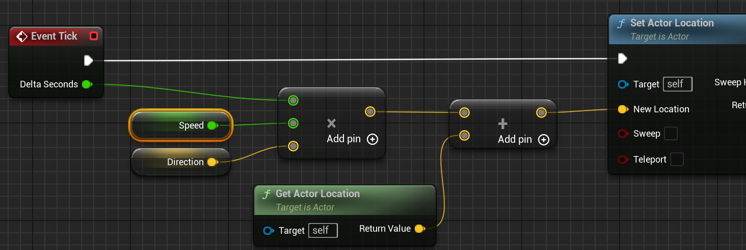 EventTick의 Forward Vector대신 Direction으로 바꿔줍니다.