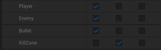 플레이 해보면 확인하기 어렵지만 총알과 에너미가 킬존에 부딪쳐 사라집니다. 하지만 플레이어 자신도 사라집니다.