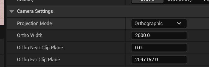 레벨에 카메라액터를 추가하고 움직이지 않아도 되니 Static으로 설정합니다.