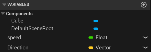 Cube를 컴포넌트로 넣어주고 speed 변수를 float로 추가하고 BP_Bullet을 블루프린트를 복사해 옵니다.