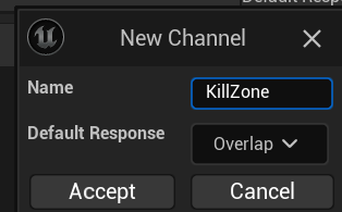 프로젝트세팅에서 콜리젼카테고리에서 NewOjectChannl을 만들고 KillZone을 추가합니다.