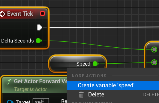 Speed노드를 우클릭후 Create variable speed 해주어도 변수가 만들어 집니다. 컴파일후 디폴트값을 150으로 합니다.