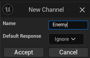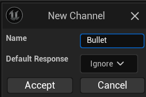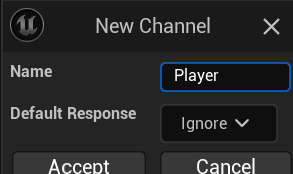 Project Setting의 Engine>Collision 카타고리에서 ObjectChannels의 NewObjectChannel을 3개 만듭니다.