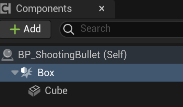 BP_Bullet을 열고 Box Collision을 추가하고 root로 해줍니다. Shape Extent를 조정해 박스를 싸줍니다.