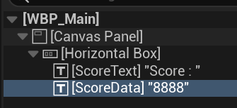 HorizontalBox를 추가하고 자식으로 텍스트를 2개 추가합니다.