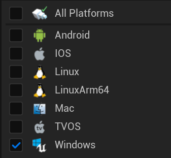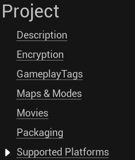 Supported Platforms 카테고리에서 필요한 플랫폼을 체크합니다.
