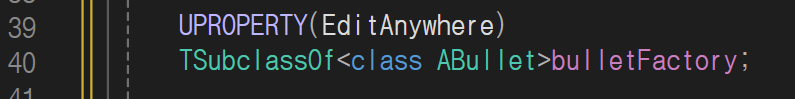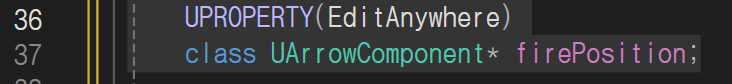 우선 playerPawn.h헤더에 발사될 위치와 발사할 총알의변수를 선언하고