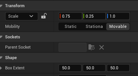 boxComp->SetWorldScale3D(FVector(0.75f, 0.25f, 1.0f));