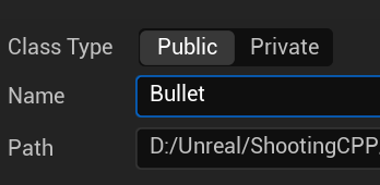 총알은 입력을 받을 필요가 없으므로 Pawn이 아닌 Actor를 부모로 제작합니다. 이름은 Bullet으로 정합니다.
