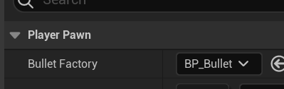 언리얼에디터로 돌아가 플레이하기전 BP_PlayerPawn을 열고 디테일에서 BulletFactory와 IA_Fire를 지정해줍니다. 컴파일해줍니다.