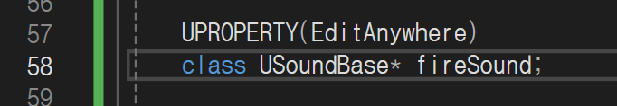 PlayerPawn.h public.h 밑에 fireSound를 UPROPERTY()로 블루프린트에 연결해주고