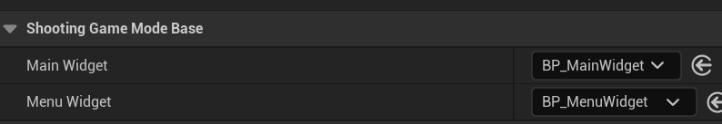 BP_ShootingGameModeBase를 열어 BP_MainWidget, BP_MenuWidget을 꼭 연결해줍니다.