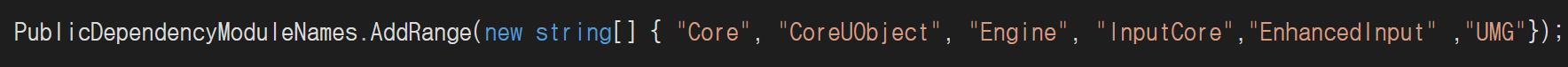 VisualStudio로 위젯을 사용하기 위해 ShootingCPP.Build.cs에 UMG모듈을 추가해줍니다. 그래야 UMG의 기능에 접근할수 있습니다.