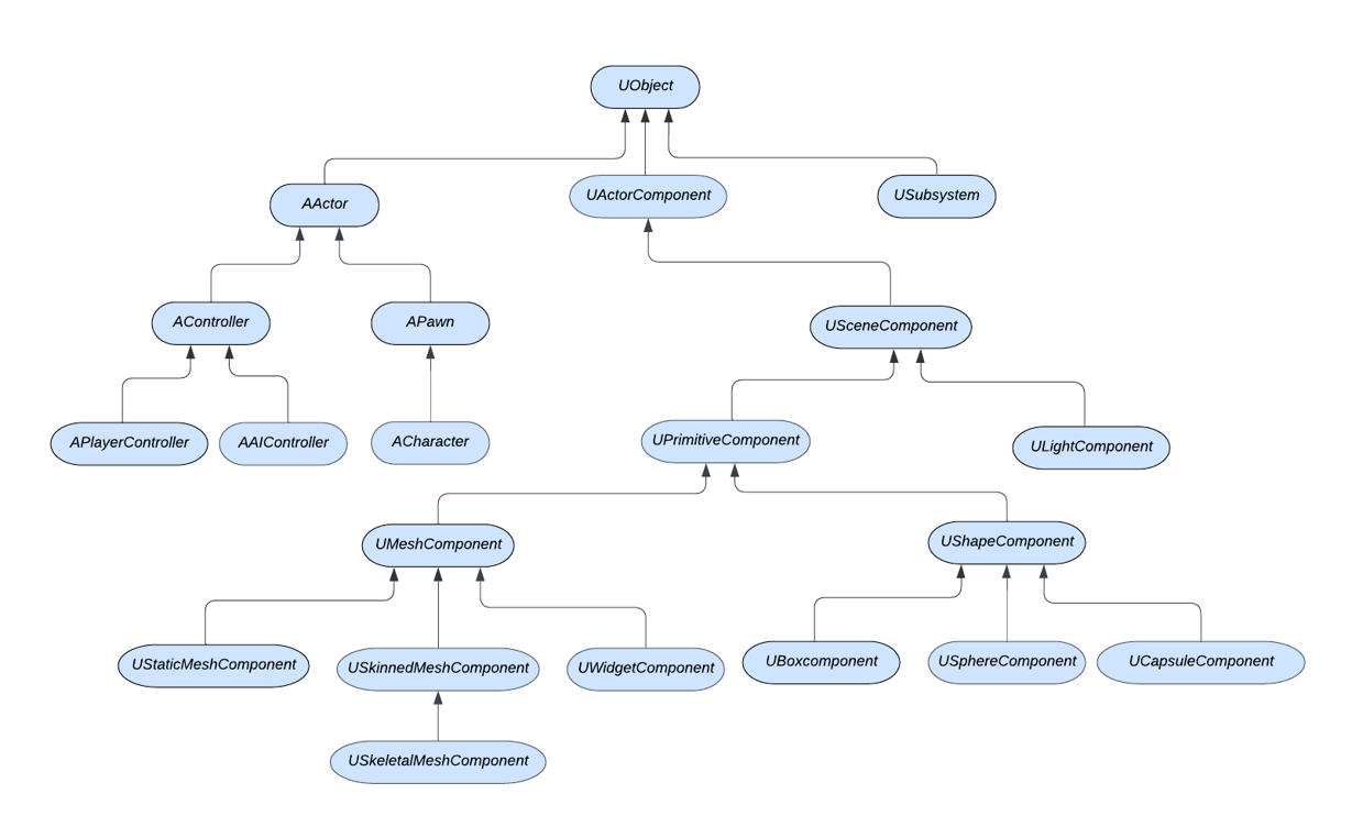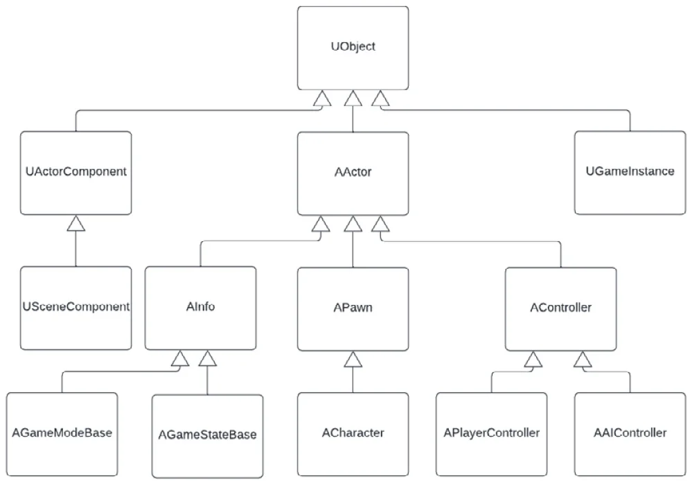 AActor->APawn->ACharactor클래스가 있는데 게임레벨안에서 인스턴스화 하는 용도로 자주 사용된다.