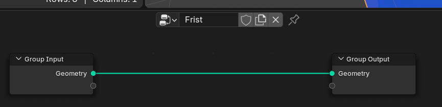 상단 geometry node tap을 눌러 편집창을 열고 Group Input과 Output이 보이는데 이 사이에 노드를 추가해서 원하는 걸 만든다