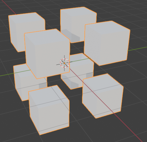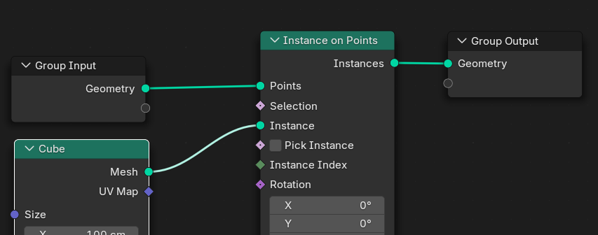 Cube를 Instance에 연결해주면 8개의 큐브가 보인다. 이상하게 보인다면 Cube의 크기를 적당히 조절하자