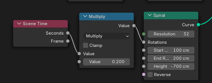 animation을 주기 위해 Scene Time을 주고 Math추가 Multiply로 바꾸고 값을 0,2 플레이하면 애니메이션됨