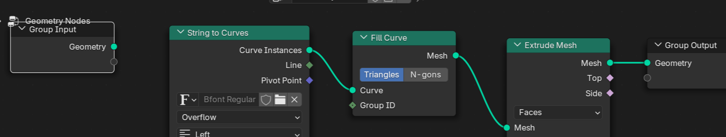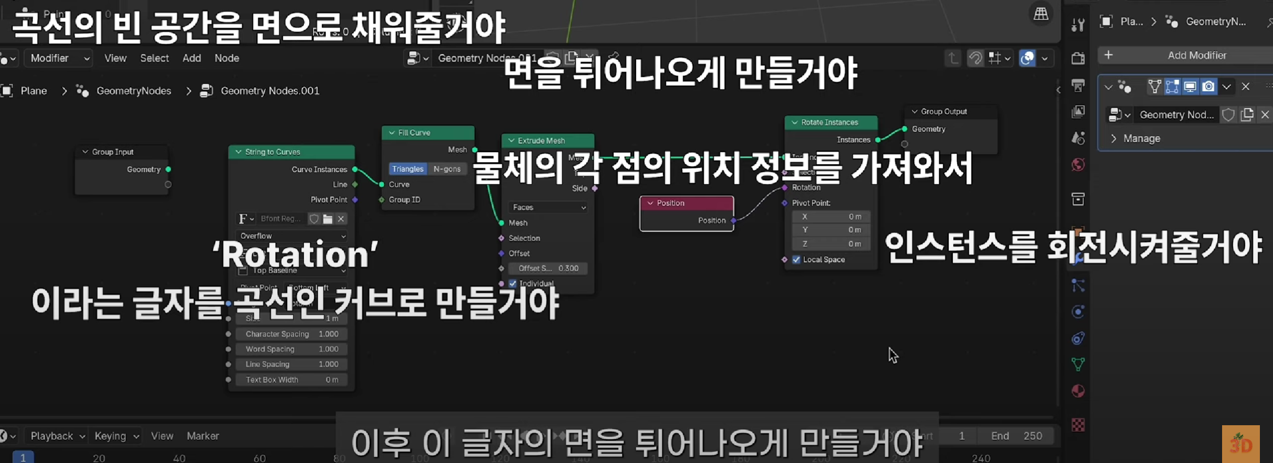 String to Curve - Fill Curve - Extrude Mesh순으로 삽입하낟.