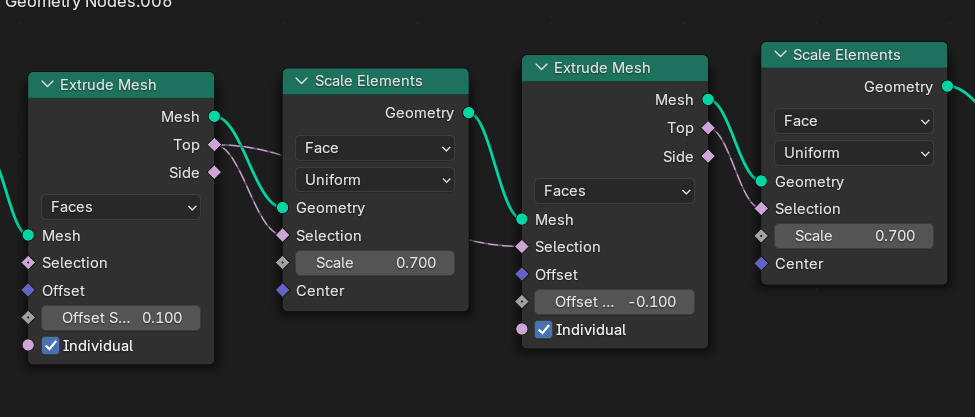 한번 더 반복한다. 2번째 Extrude Mesh의 Selection은 앞쪽의 Extrude Mesh의 top을 연결한다.