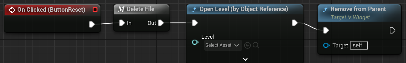 8. 다시 게임을 시작하고 OpenLevel(by Object Reference)를 추가하고 Remove from Parent를 추가해 메뉴를 닫아준다