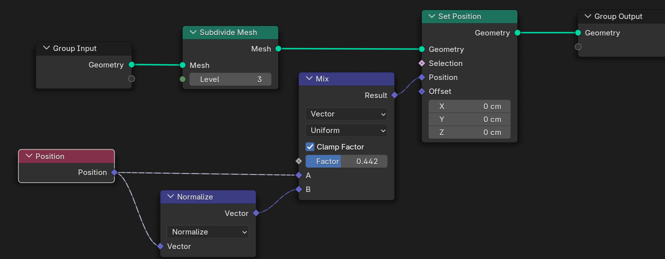 Mix를 추가해 원래 위치와 노말라이즈드 위치를 믹스해서 모핑을 할수도 있다.